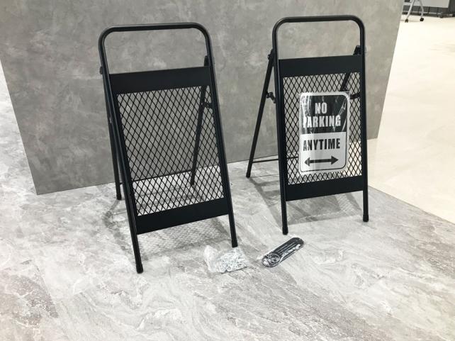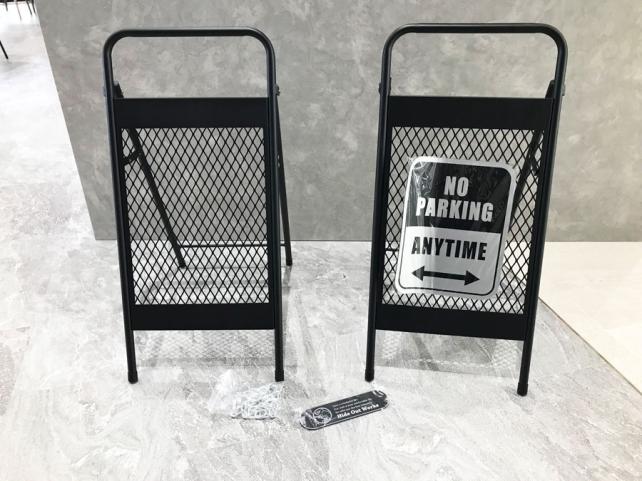 ちょうど右側のスタンドに「NO PARKING」が貼りついてますが、これもマグネットシートです。