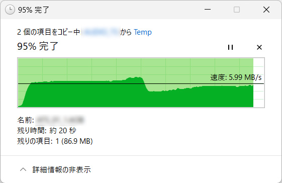 DVD-ROMの、約1GBサイズのファイルを2つPCの内蔵HDDにコピーして、転送速度を見てみました。