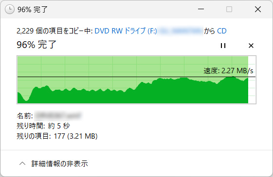 速くても、2MB/s程度で、DVDの1/3程度でした。
