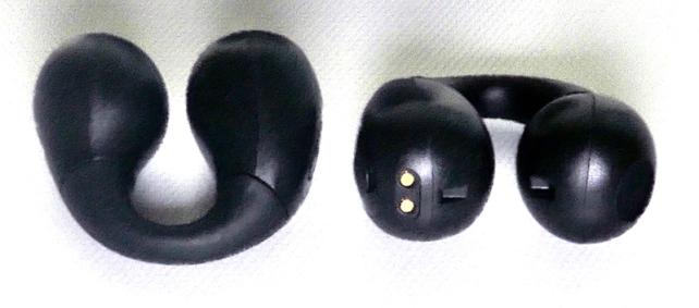 イヤフォンは、WEBページではイヤーカフ型と記載の通り、イヤーカフのように耳に挟むものです。