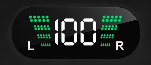 充電中は、充電率表示の左右にある緑色の4段階のインジケータが、下から上に伸びる表示で、充電中であることを表します。