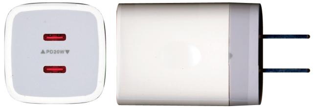 この充電器は、USB PD(Power Delivery)対応の充電器で、2つのUSB Type-Cポート各々が同仕様で、20W x2=40Wの充電器です。