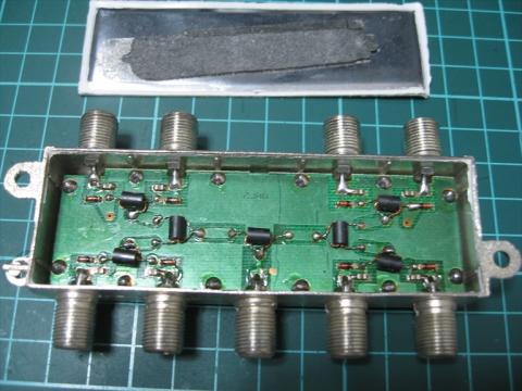 下は従来使用していた中国製の8分配器です(今回のも中国製らしいですが)以前中国製分配器は内部で信号線を繋いだだけとか言う人も居ましたので確認のため分解してみました キャビネットは鋳物