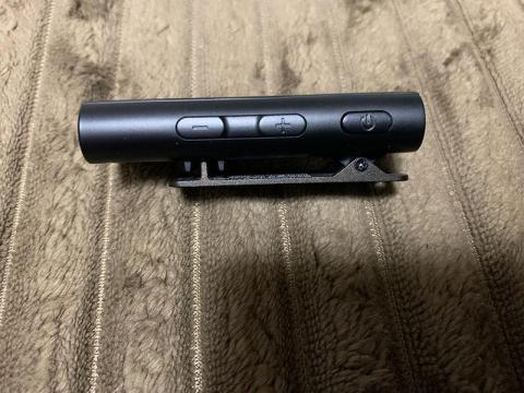操作はこの側面のボタンで行います。基本的には右から電源・音量アップ・音量ダウンなのですが、押し込み方によって再生/停止・曲送り・曲戻しとしても機能します。