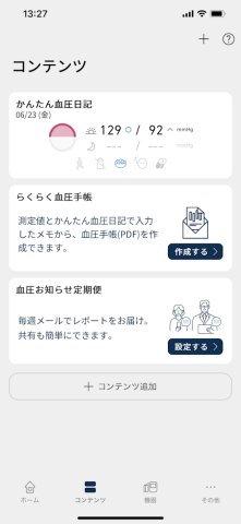 「かんたん血圧日記」は朝晩の血圧値の傾向がわかり、服薬やその日の行動も記録できます。