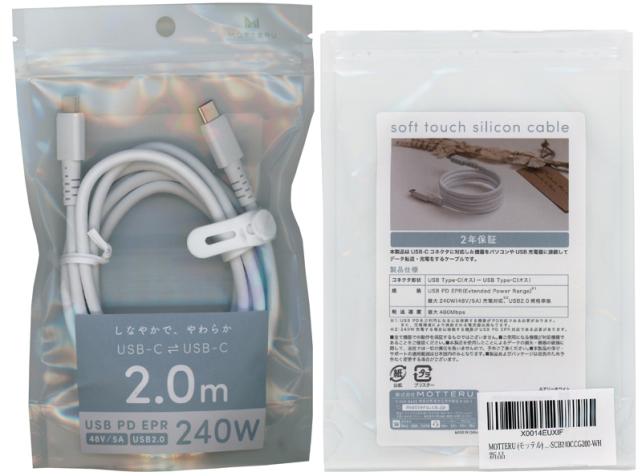 パッケージは、白背景に透明のチャック付きビニール袋に、USB PD EPR(Extended Power Range)という、USB PDの最新仕様に対応している(48V/5A=240W)ことが記載されています。