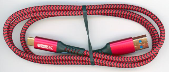 ケーブル長は1mで、ケーブル自体は、赤/黒のナイロン繊維編み込みで、若干細めのケーブルです。