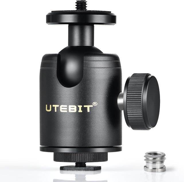ボールヘッドには、30mm径のボールに1/4ネジと固定用の台座が付いています。