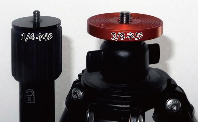 私が所有している大きな三脚は、3/8ネジ、小型三脚及び一脚は、1/4ネジで雲台を固定します。