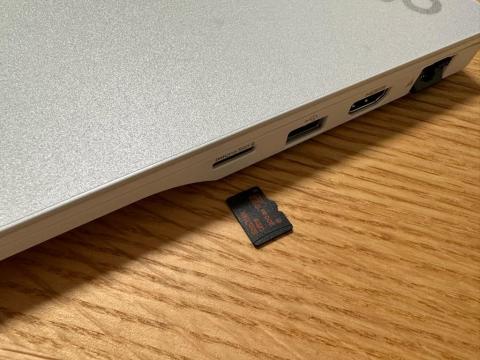 microSDカードは挿入するとちょびっと飛び出す状態となります