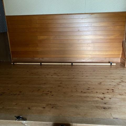 手すりのブラケットを均等に考えていたけど、実際は壁の裏の板の配置が悪く3点止めになりました。