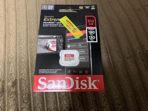 というわけで、つい最近までSanDisk製のmicroSDXCメモリーカードであれば、べーシックグレードのUltraで512GBモデル5千円前後が底値だったのですが、今月に入ってその価格帯に上位モデルのExtremeが降りてきましたので、試しに1枚買ってみることにしました。