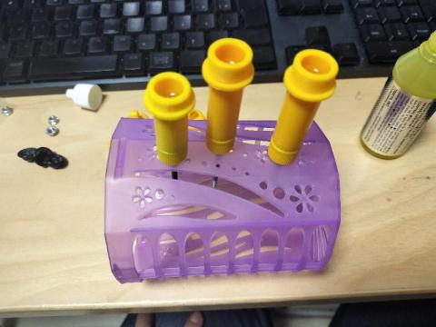 タミヤの旧車といえばこの黄色いCVAダンパー。これが今作っても本当にうまく動かすのが難しいんですよね。