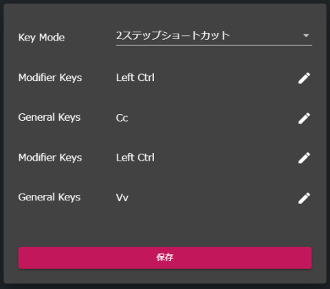 2ステップでは、キーを押したときと離したときの2つのキーを設定出来る。