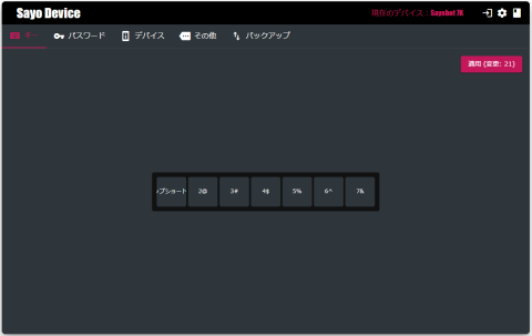 7キー分のボタンが現れる。1つずつキーを選択して設定していく。設定内容は後に行う。