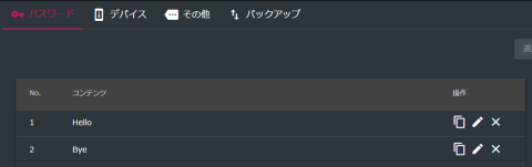 パスワードのタブを選択するとパスワードという名の任意の文字列を入力可能して登録可能です。
