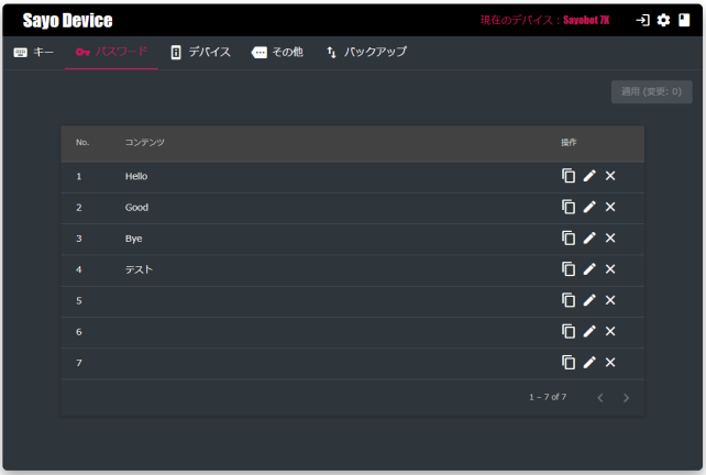 冒頭に「SayoDevice マクロカスタムキーボード 7 key」と追加したバージョン。物理キーと入れ物でしょうか。