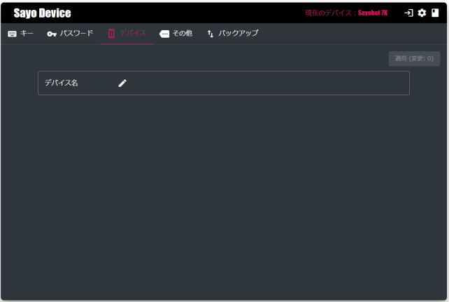次。デバイスタブではデバイス名を変更出来る・・・らしい。