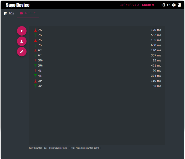 レコードではPCに接続しているデフォルトキーボードの押したキーを検知し記録しJSONファイルとして保存できます。