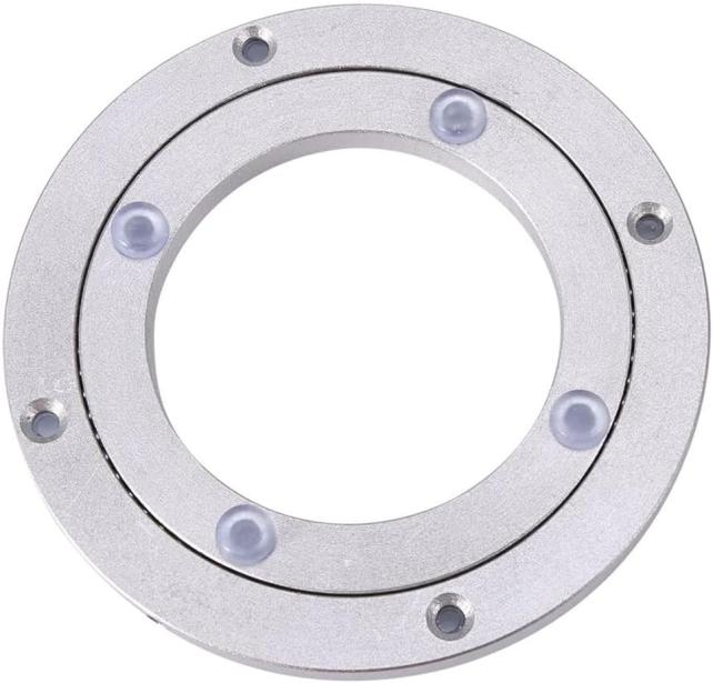 本来、中華料理店でよく見かける回転テーブルを作るために用いる回転盤ですが、動画や静止画で物を回転させながら撮影する撮影台を目的としました。