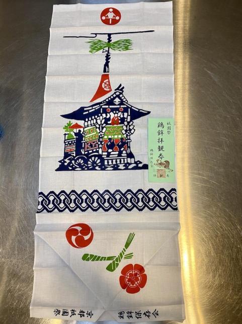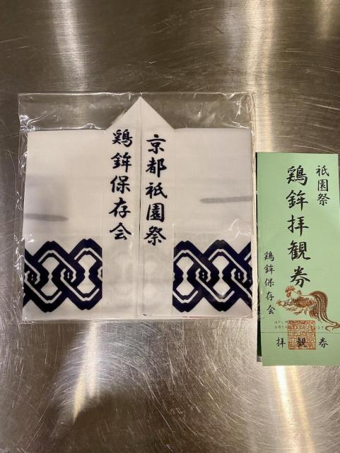 鶏鉾さんとこの手ぬぐいは 鉾の上に登れる拝観券も付いてました。