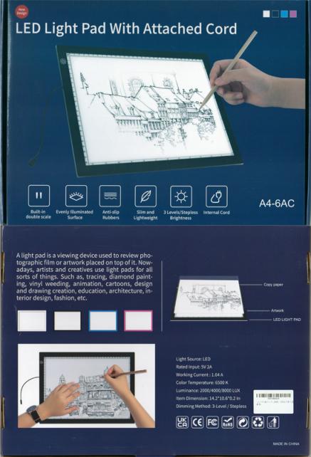 パッケージは、濃紺をベースに、トレース台をベースにイラストを描画しているイメージ写真と、商品の特徴が、ピクトグラムと共に記載されています。