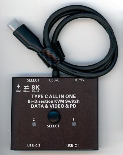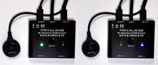 色及び左右の位置が一致しないという、いかにもMade in Chinaらしい仕様ですが、切替コントローラーは接続しなくても、USB切替器本体のSELECTスイッチを押すことで切り換えることができます。