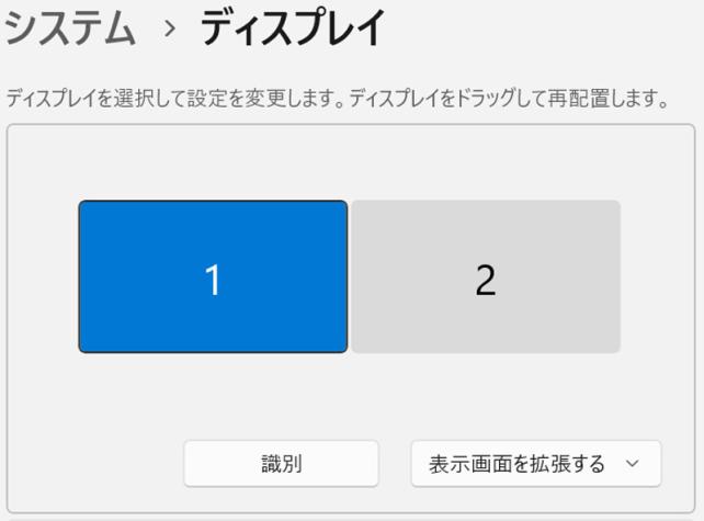 ノートPCには、ちゃんと外部モニターが認識され、デュアルモニター環境が構築できました。