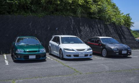 知り合いと会った時に90年代シビックとランティスの間に紛れ込む2002年製アテンザの図。