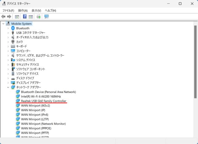 このアダプターをノートPCに接続して、デバイスマネージャーを見てみると、Realtek USB GbE Family Controllerが追加され、Realtek製チップを搭載していることが判ります。