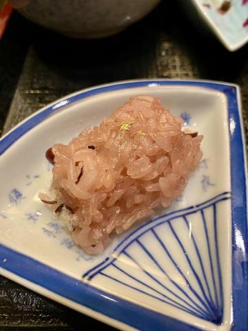 お祝いの席ということで 金粉載せの赤飯は お店の心遣い