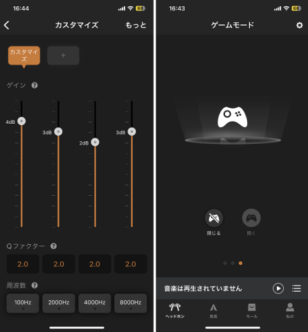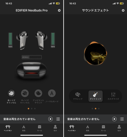 クラシック・ダイナミック・カスタマイズと決められた音調効果で音楽を聴くことが出来ます。