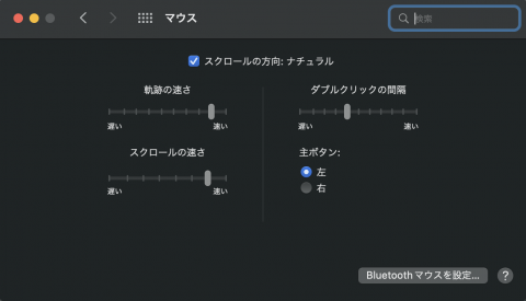 マウスカーソルの軌跡の設定もMac OSのシステム環境設定のマウスの設定から簡単に変更出来るので、軌跡を確かめながら使いやすい速さに設定すれば良いです