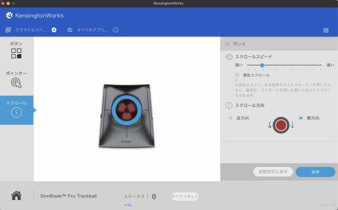 専用設定アプリ KensingtonWorks を使えばボタンに好みの動作を割り付けたりスクロールのスピードの変更やスクロールに慣性を付ける付けないなどの設定が出来ます
