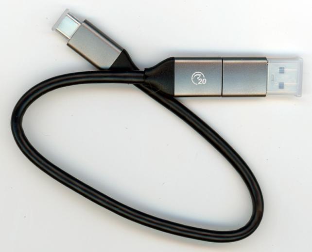 USBケーブルは、USB Type-C > Type-C/Aケーブルで、USB Type-Aアダプターが、USB Type-Cコネクターにかぶさった状態で梱包されていました。