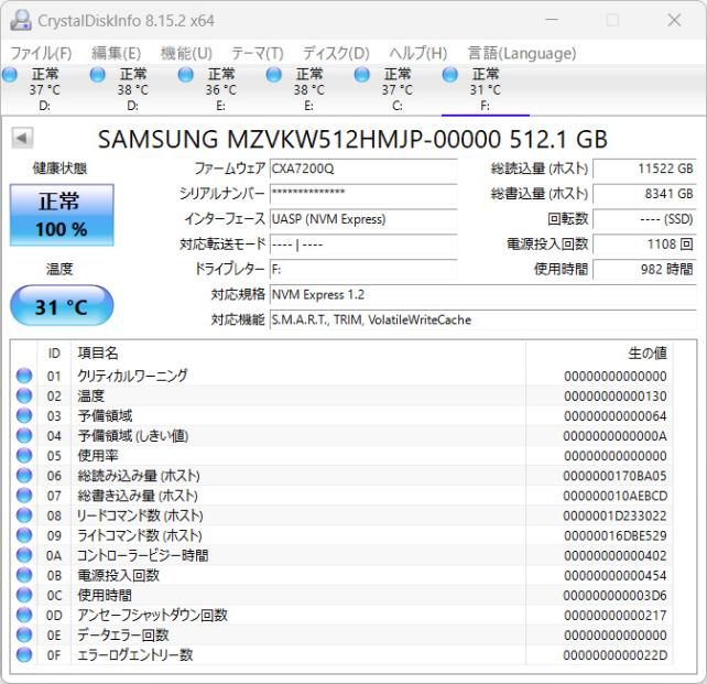 DiskInfoで見てい見ると、UASP対応であることが確認できました。