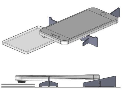 組み立てると三つのパーツになります。下の画像のように置いてiPhoneのライトニングポートの位置にあるパーツを前後させると、残りの二つのパーツを支点にシーソーのようにレンズ部の高さが上下するので、その仕組みでピントを調整します。多少の慣れが必要ですが、嘘のようにピタッとピントを保持できるので、被写体によっては大変重宝します。
