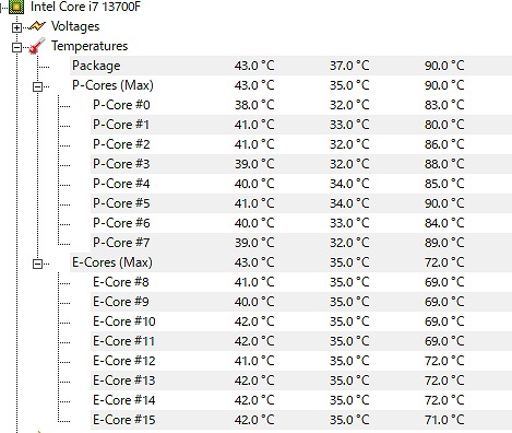 金具装着後に同じようにベンチマークを数回回してみた結果は最大90℃と約7℃下がりました。