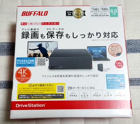 6TBの外付けHDDの中で、そこそこ評判の良さそうなBUFFALO HD-NRLD6.0U3-BAにする事にしました。