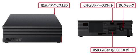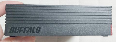 向かって右側面。左下にBUFFALOのロゴ、右上にLEDランプ。