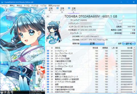中身のベアドライブは、東芝のDT02ABA600Vのようです。