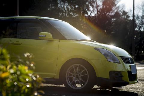 という訳でこれで車を撮るときは「車の周囲に大きなスペースをとれる」と判っている時に限られる。ちょっとドライブついでにぱっと停めた場所で記念撮影とかはキツイ。↑のスイフトとオーリスもまもなく乗り換えるという友人の車を時間帯等選んで撮影したもの。
