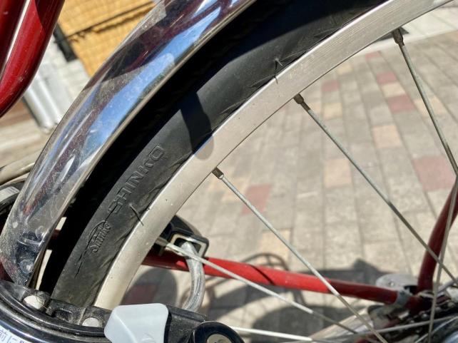 トレッドが無くなり、チューブが傷んでしまったパナソニック製の前輪。