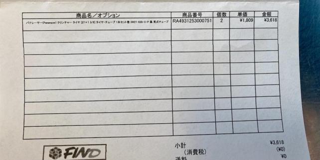 Amazonでパナソニック製のタイヤ(中国製)とチューブのセットが