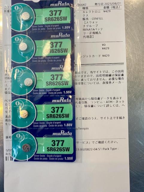 ムラタ ジャパン の刻印と共に SR626SWの型番表示を見つけました。