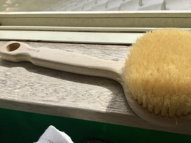 そんなとき、ふと思い出したのが 結婚のお祝いでいただいた馬毛のボディブラシ。