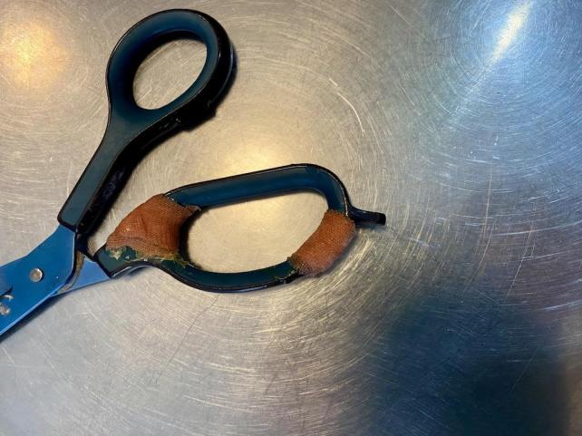 ハサミを直すために使いますが、このテープは指だけで簡単に切れます。