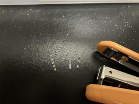 まず、ホッチキスを空打ちして針を取り出します。