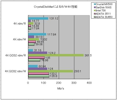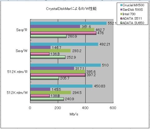 手持ちの2.5インチSSDの性能比較をグラフにしてみました。