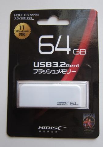 HIDISCのUSBメモリ64GBです.型番は,HDUF116S64G3WHです.